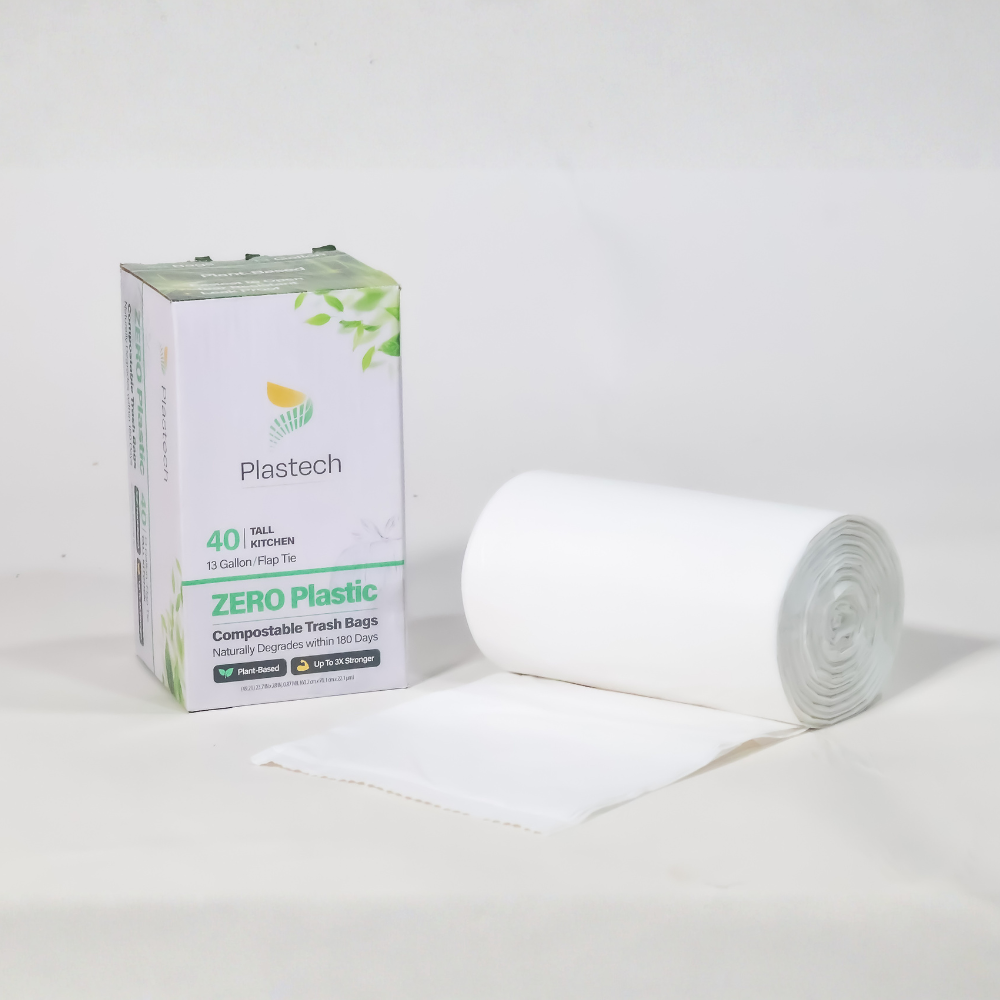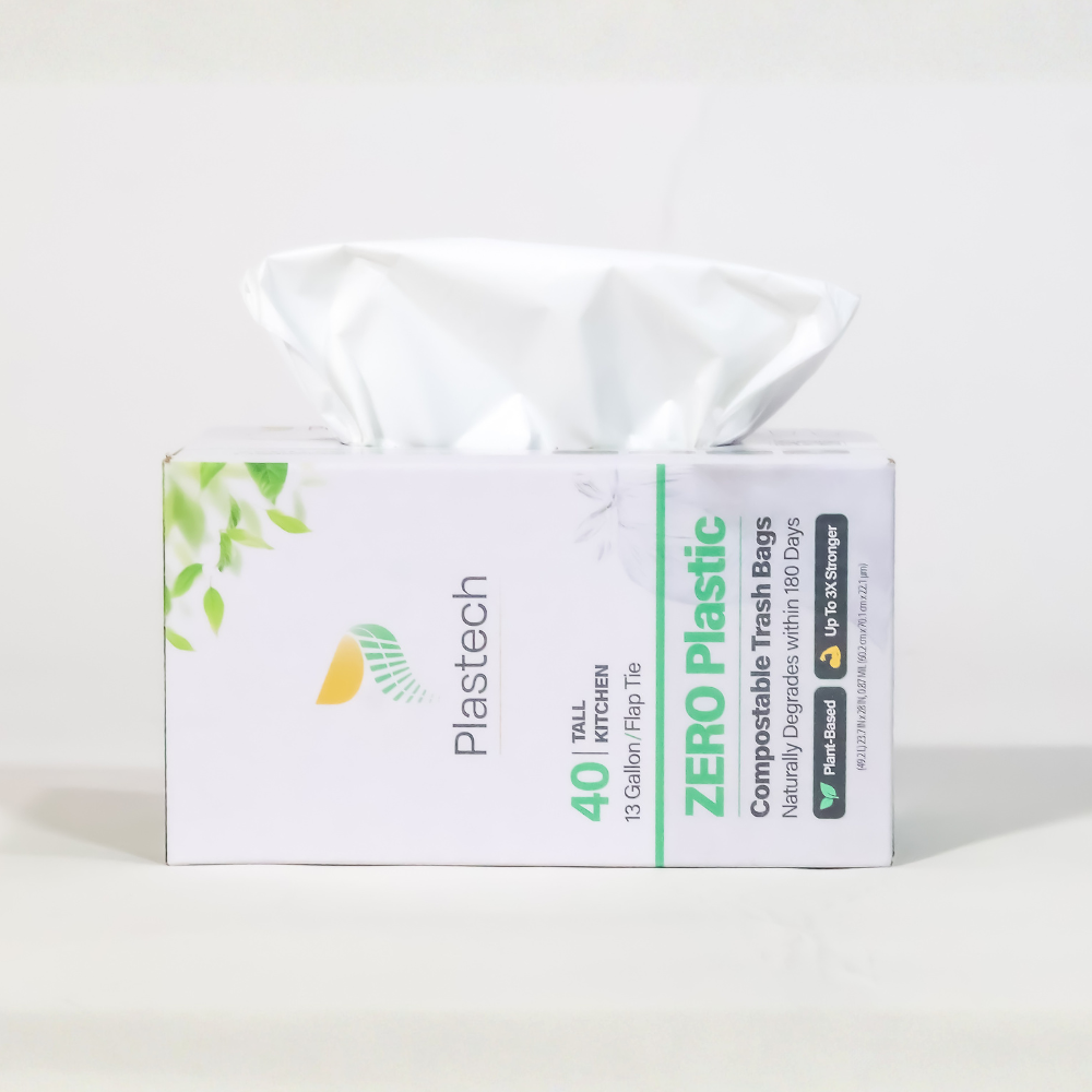 Unlike traditional plastic bags that linger in landfills for centuries, Plastech’s 13 Gallon Trash Bags are Home Compostable, and break down naturally within 180 days, returning valuable nutrients to the soil. Formulated with natural and non-toxic ingredients, these bags are landfill friendly and offer a practical alternative to harmful plastics, catering to the well-being of our environment.