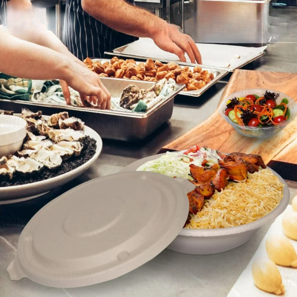 100% Home Compostable Bagasse flat lids made from renewable sugarcane fibers. Ditch traditional plastics for these sustainable alternatives that hold up in hot and frozen foods. They break down completely without leaving harmful residues. Two lid size options available to fit our 24oz. or 32oz. Bagasse bowls for easy storage and disposal. Make the switch to Plastech Bagasse food service products to make a statement of your commitment to a greener future.